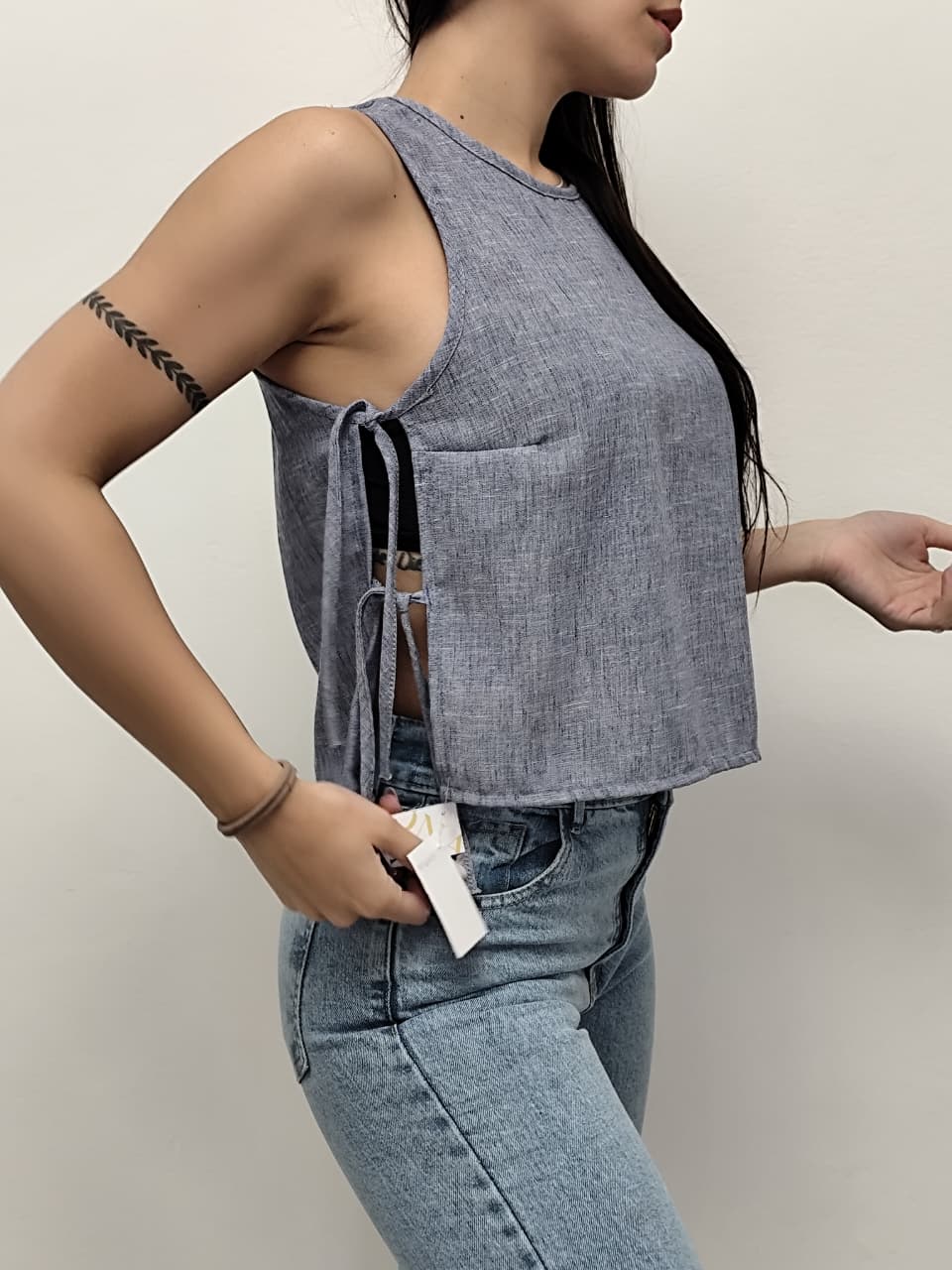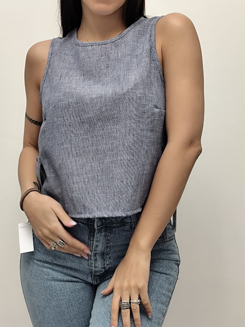 Top fresco y versátil en tela liviana que aporta comodidad. Perfecto para combinar con jeans, shorts o faldas.